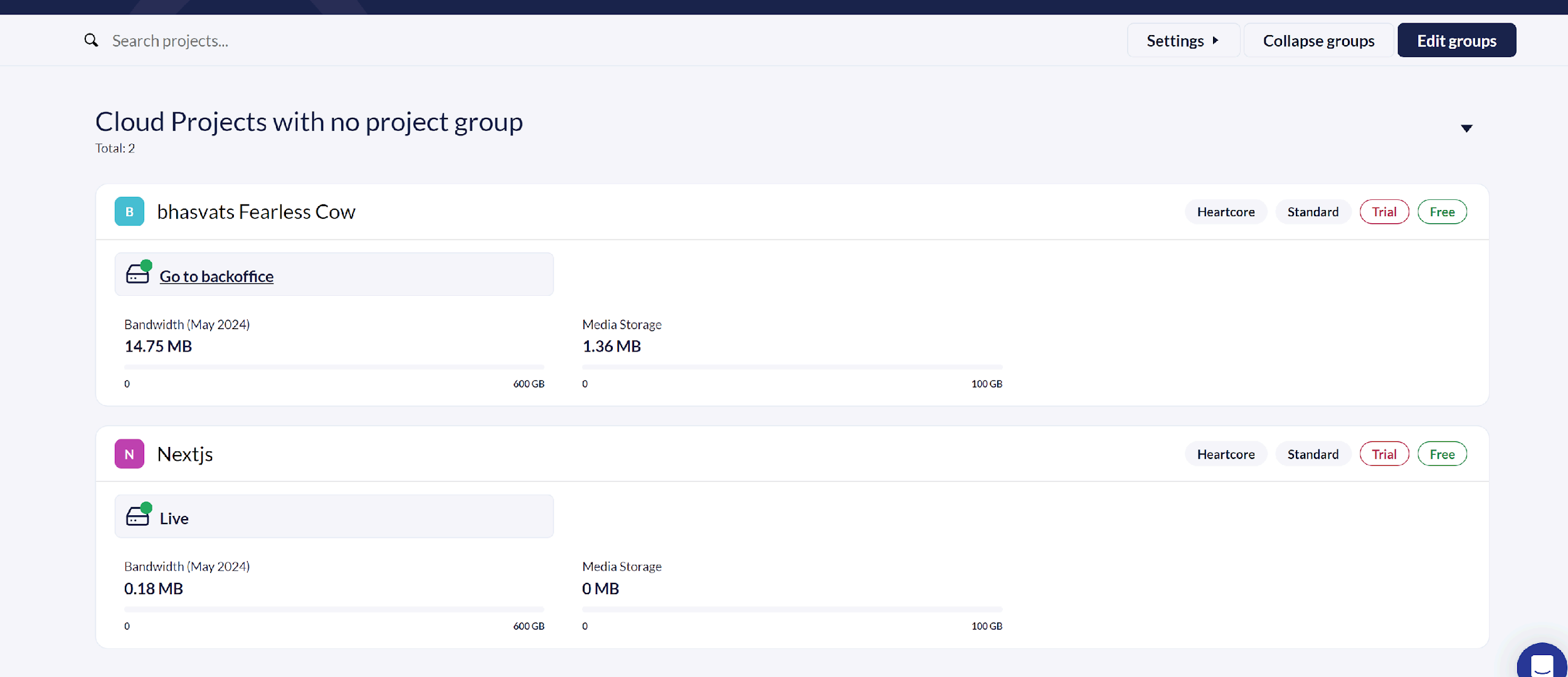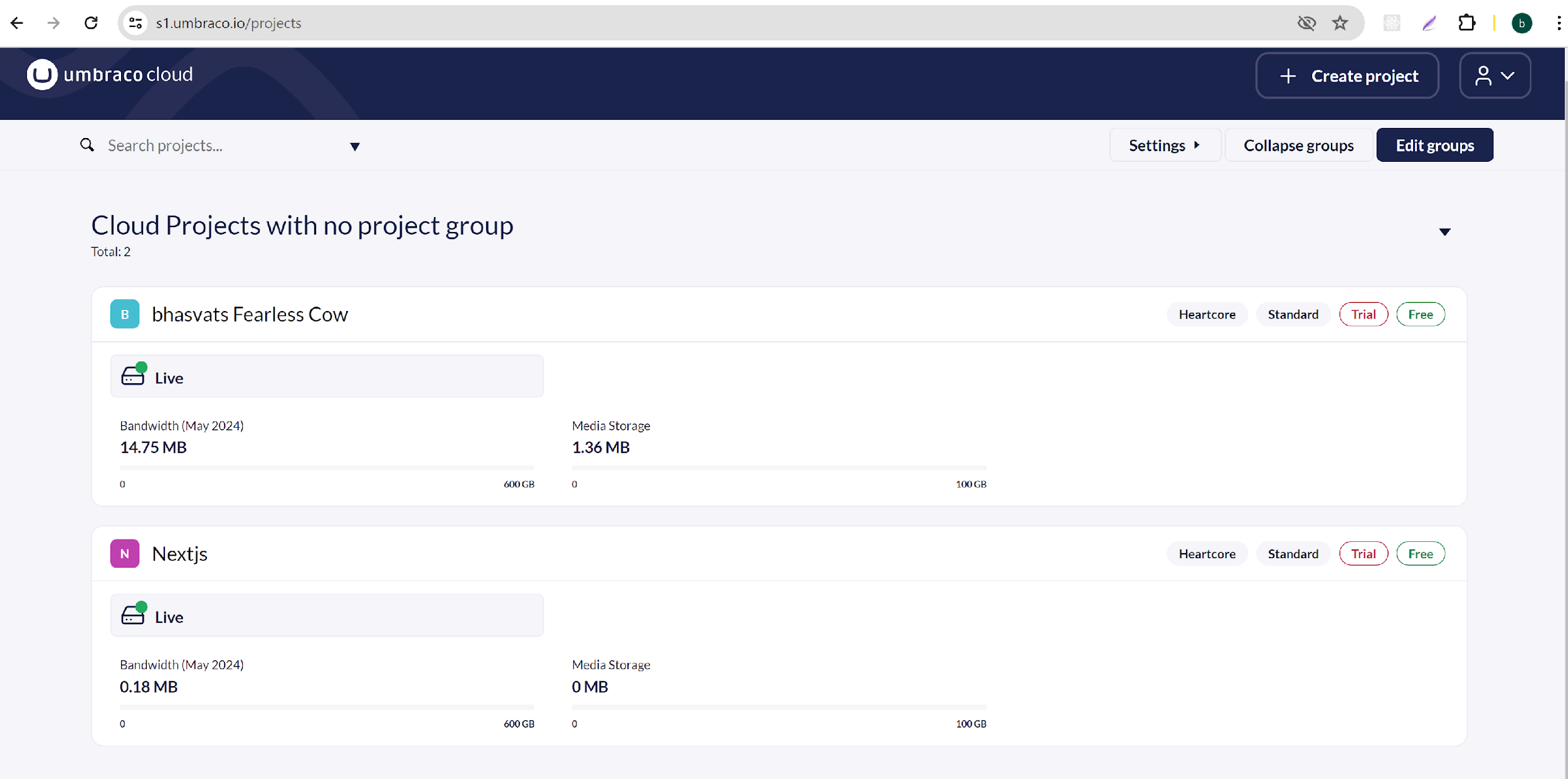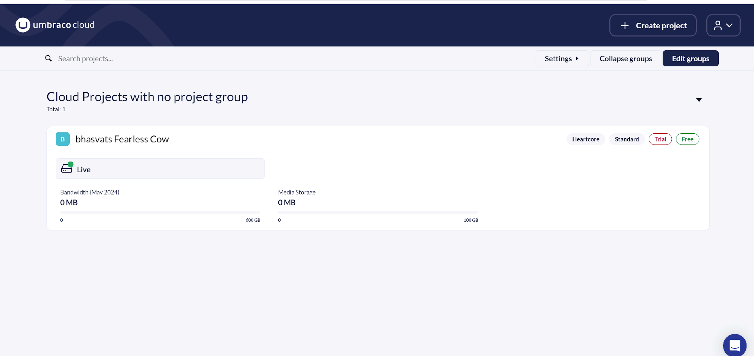 Here you can see the default project available. You can use this or create new project by click on Create project button.
