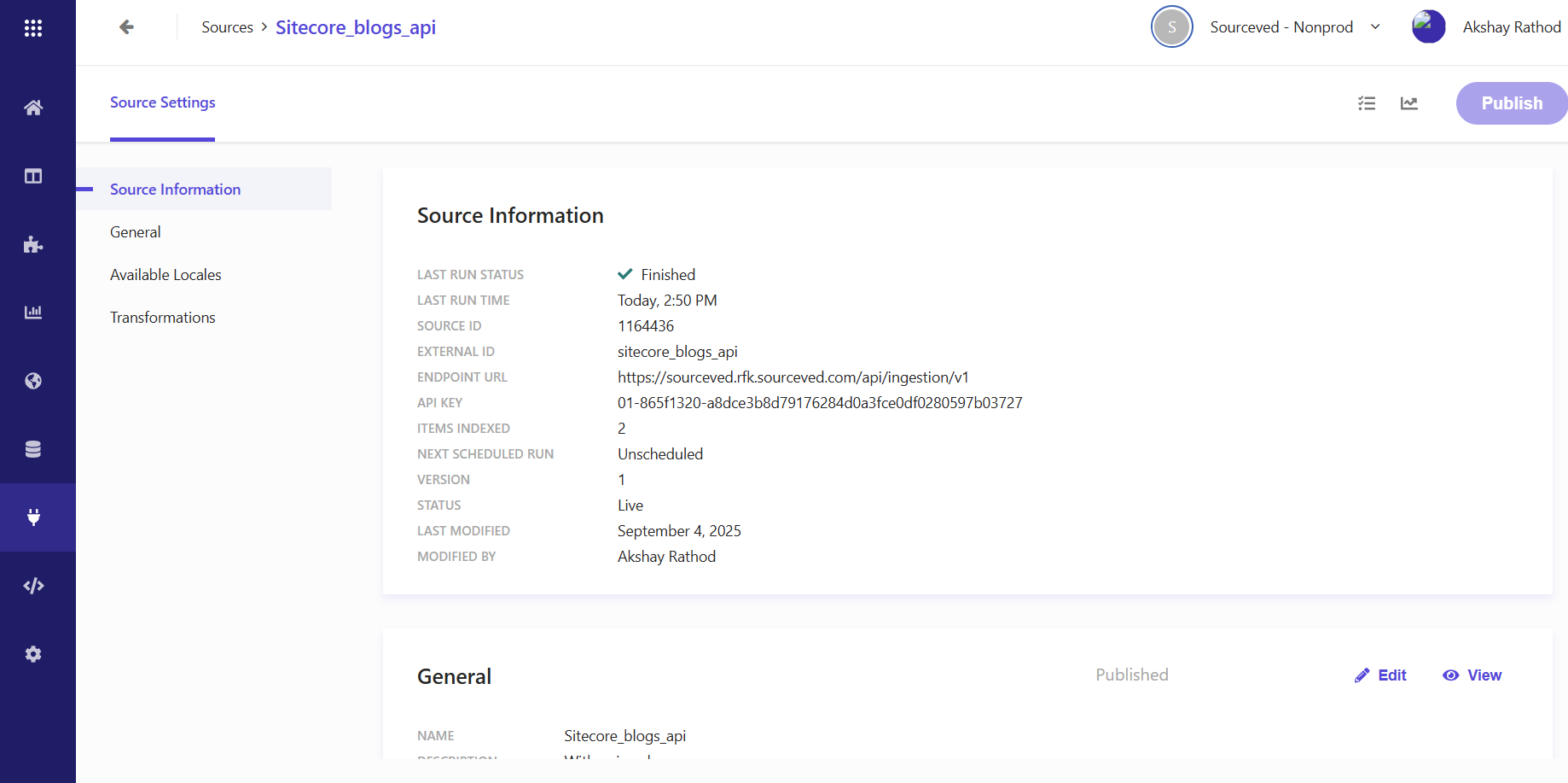 - Ingestion API (API Push) – Pushes content directly into the index in real time. Perfect for dynamic, high-frequency, or user-generated content.